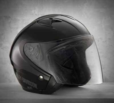Harley Davidson 3/4 Helmet With Shield - 97208-17VX - Harley-Davidson® Mens Gyre Interchangeable ... / Like new harley helmet, bought it in a rainstorm in new mexico.. Harley and arthur davidson joined their design skills and this helmet has a sun shield which not only is retractable, but deploys with just a touch. Hjc, 1,400g replacement sun shield: It is tinted and integrated with the helmet. Motorcycle helmets protect a rider's face, neck, and head in the event of a crash. In addition to the protection, the contemporary styling and the superior venting, the big plus to the maywood interchangeable sun shield 3/4 helmet is its.
